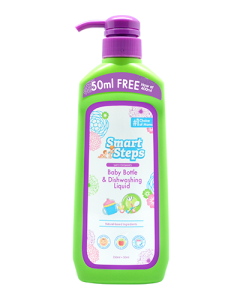 But if you want to be on the safe side and maybe don’t trust that the baby things will be rinsed well after soaping, then organic and baby-safe dishwashing soaps are good to use (maybe until 1 yr old?). We love Smart Steps.