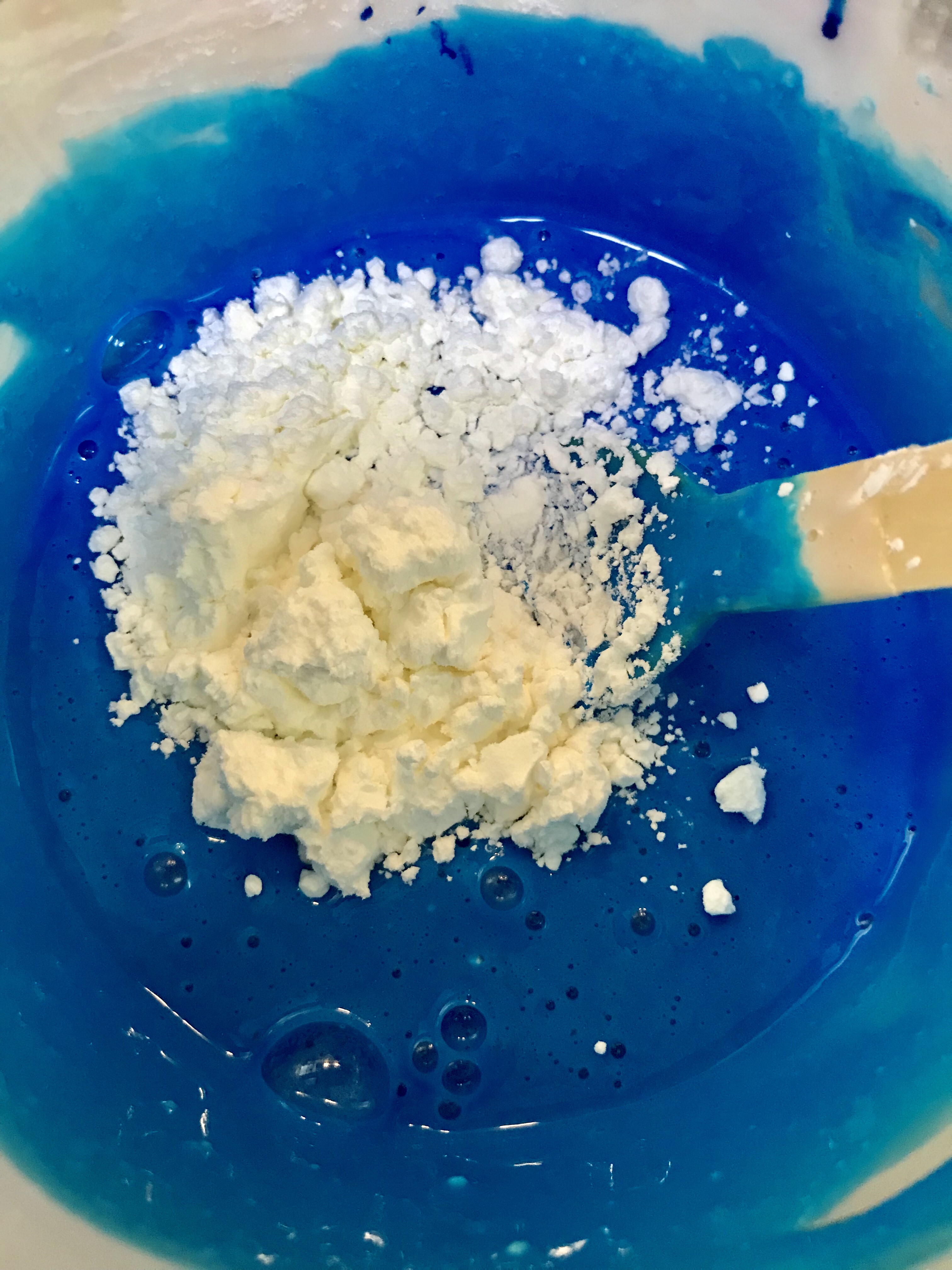 - Add more cornstarch if the solution is too watery or add more shower gel or baby bath if too thick.