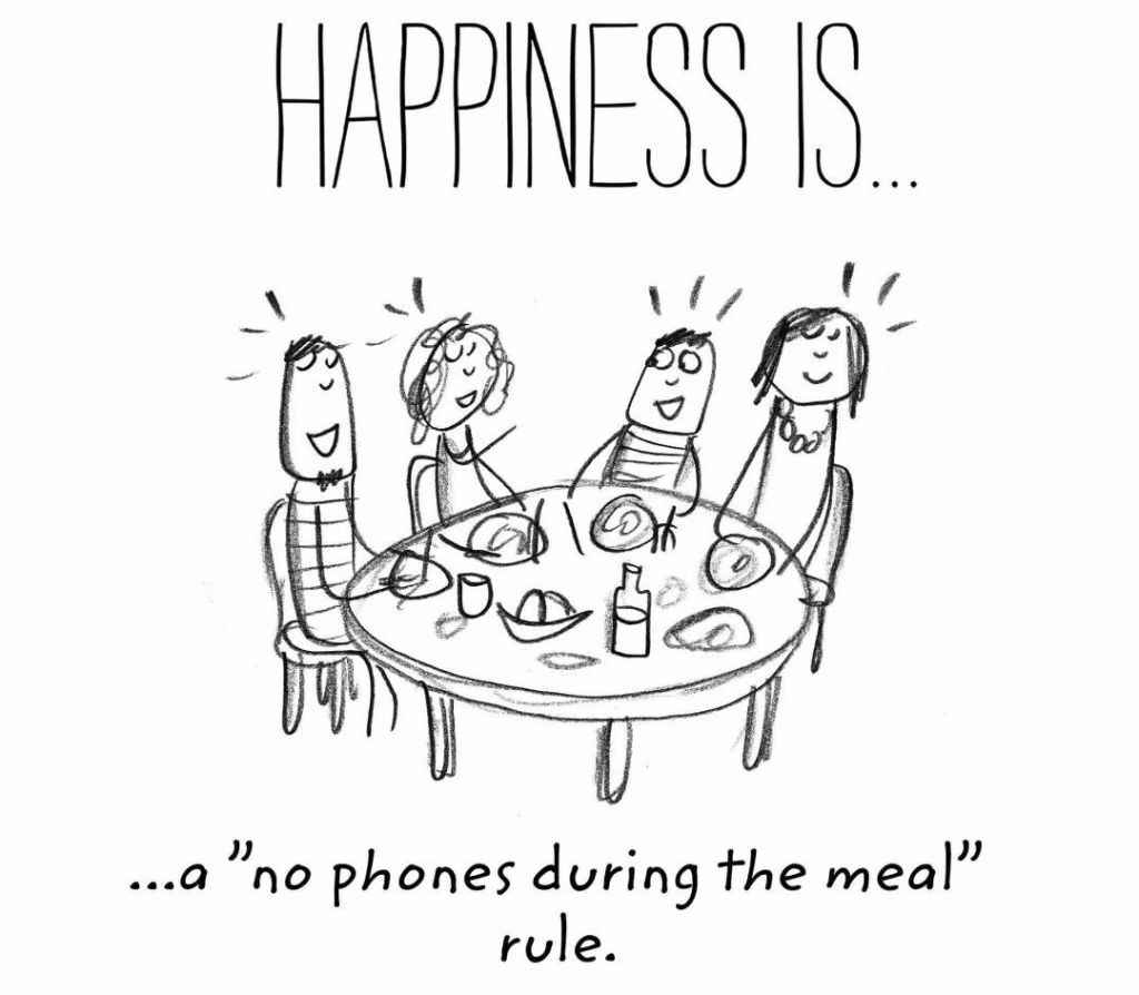 This rule will really help everyone focus in eating and catching up with each other. Of course, while chatting, everyone will still observe rule #3 below. Using the phone, tablet, laptops, watching tv, or playing with toys will definitely distract and prevent you from conversing well and listening to whoever is talking.